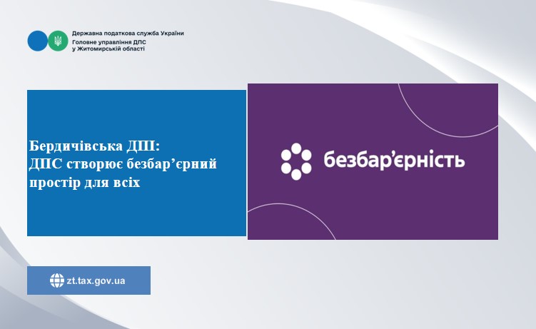 Бердичівська ДПІ нагадує, що метою Національної стратегії із створення безбар’єрного простору в Україні на період до 2030 року є створення безперешкодного середовища для всіх суспільних груп, забезпечення рівних можливостей кожній людині реалізовувати свої права, отримувати послуги на рівні з іншими шляхом інтегрування фізичної, інформаційної, цифрової, суспільної, громадянської, економічної та освітньої безбар’єрності до всіх сфер державної політики.