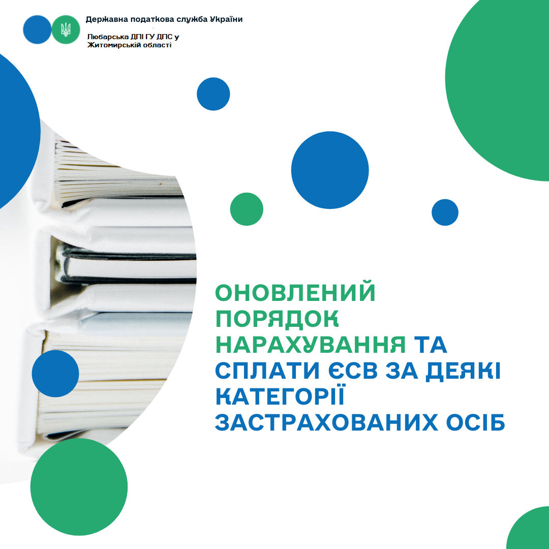 Любарська ДПІ ГУ ДПС Житомирській області інформує, що Кабінет Міністрів України постановою від 04.08.2021 р. № 850 «Про внесення змін до Порядку нарахування та сплати єдиного внеску на загальнообов’язкове державне соціальне страхування за деякі категорії застрахованих осіб» вніс зміни до Порядку нарахування та сплати єдиного внеску на загальнообов’язкове державне соціальне страхування за деякі категорії застрахованих осіб.