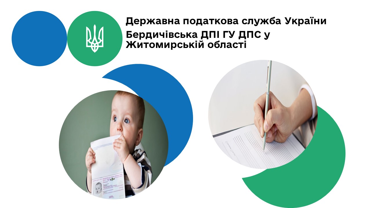Бердичівська ДПІ інформує, що у разі втрати або зіпсування документа, що засвідчує реєстрацію у Державному реєстрі фізичних осіб – платників податків малолітньої особи (до 14 років), один з батьків (усиновитель, опікун, піклувальник) подає до контролюючого органу заяву про внесення змін до Державного реєстру фізичних осіб – платників податків за формою № 5ДР, пред’являючи при цьому документ, що посвідчує його особу, та свідоцтво про народження дитини.