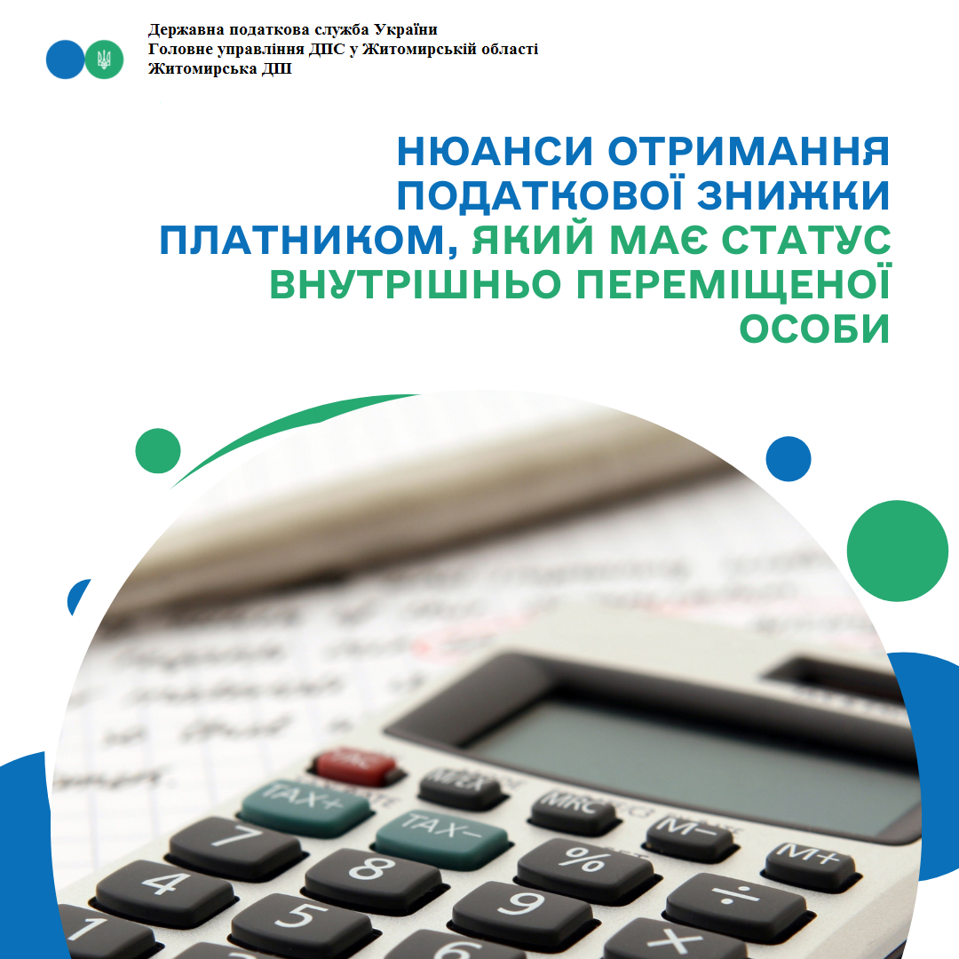 Житомирська ДПІ: Нюанси отримання податкової знижки платником, який має статус внутрішньопереміщеної особи