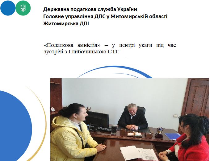 Керівником Житомирської ДПІ ГУ ДПС у Житомирській області Святославом Максимчуком 20 жовтня проведено зустріч з працівниками Глибочицької СТГ.