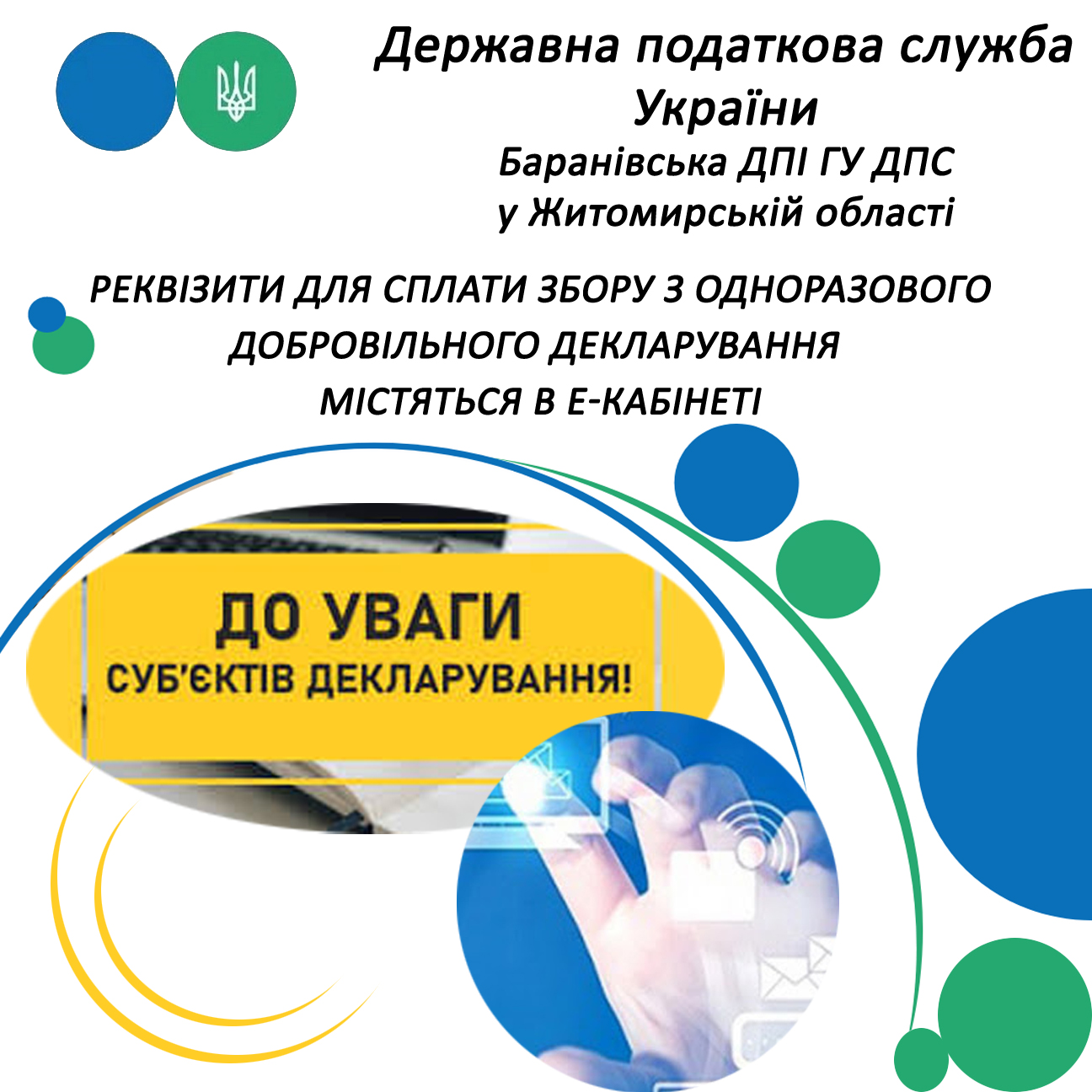 Баранівська ДПІ: Реквізити для сплати збору з одноразового добровільного декларування містяться в Е-кабінеті