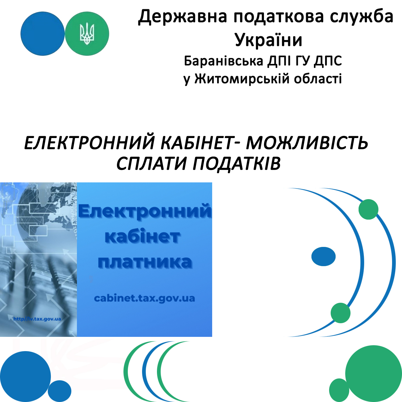 Баранівська ДПІ ГУ ДПС у Житомирській області інформує, що «Електронний кабінет» забезпечує можливість реалізації платниками податків прав та обов’язків, визначених ПКУ та іншими законами, контроль за дотриманням яких покладено на контролюючі органи, та нормативно-правовими актами, прийнятими на підставі та на виконання ПКУ та інших законів, контроль за дотриманням яких покладено на контролюючі органи, в тому числі, шляхом, зокрема, перегляду інформації про платника податків, що збирається, використовується та формується контролюючими органами у зв’язку з обліком платників податків та адмініструванням податків, зборів, митних платежів, єдиного внеску на загальнообов’язкове державне соціальне страхування (далі – єдиний внесок), здійсненням податкового контролю, у тому числі дані оперативного обліку податків, зборів, єдиного внеску (у тому числі дані інтегрованих карток платників податків), дані системи електронного адміністрування податку на додану вартість, дані системи електронного адміністрування реалізації пального та спирту етилового, а також одержання такої інформації у вигляді документа, який формується автоматизовано шляхом вивантаження відповідної інформації з електронного кабінету із накладенням кваліфікованого електронного підпису посадової особи контролюючого органу та кваліфікованої електронної печатки контролюючого органу із застосуванням засобів кваліфікованого електронного підпису чи печатки, які мають вбудовані апаратно-програмні засоби, що забезпечують захист записаних на них даних від несанкціонованого доступу, від безпосереднього ознайомлення із значенням параметрів особистих ключів та їх копіювання.
