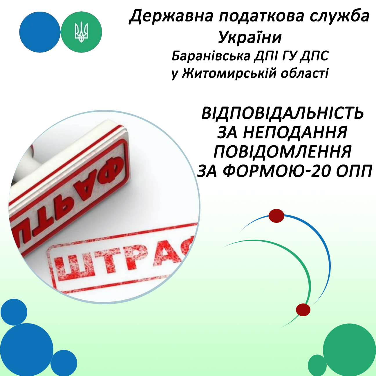 Слід зазначити, що відповідальність за неподання (несвоєчасне подання) повідомлення за ф. № 20-ОПП протягом періоду здійснення заходів, спрямованих на запобігання виникненню і поширенню коронавірусної хвороби не застосовується (п. 521 підрозд. 10 розд. ХХ «Перехідні положення» ПКУ).