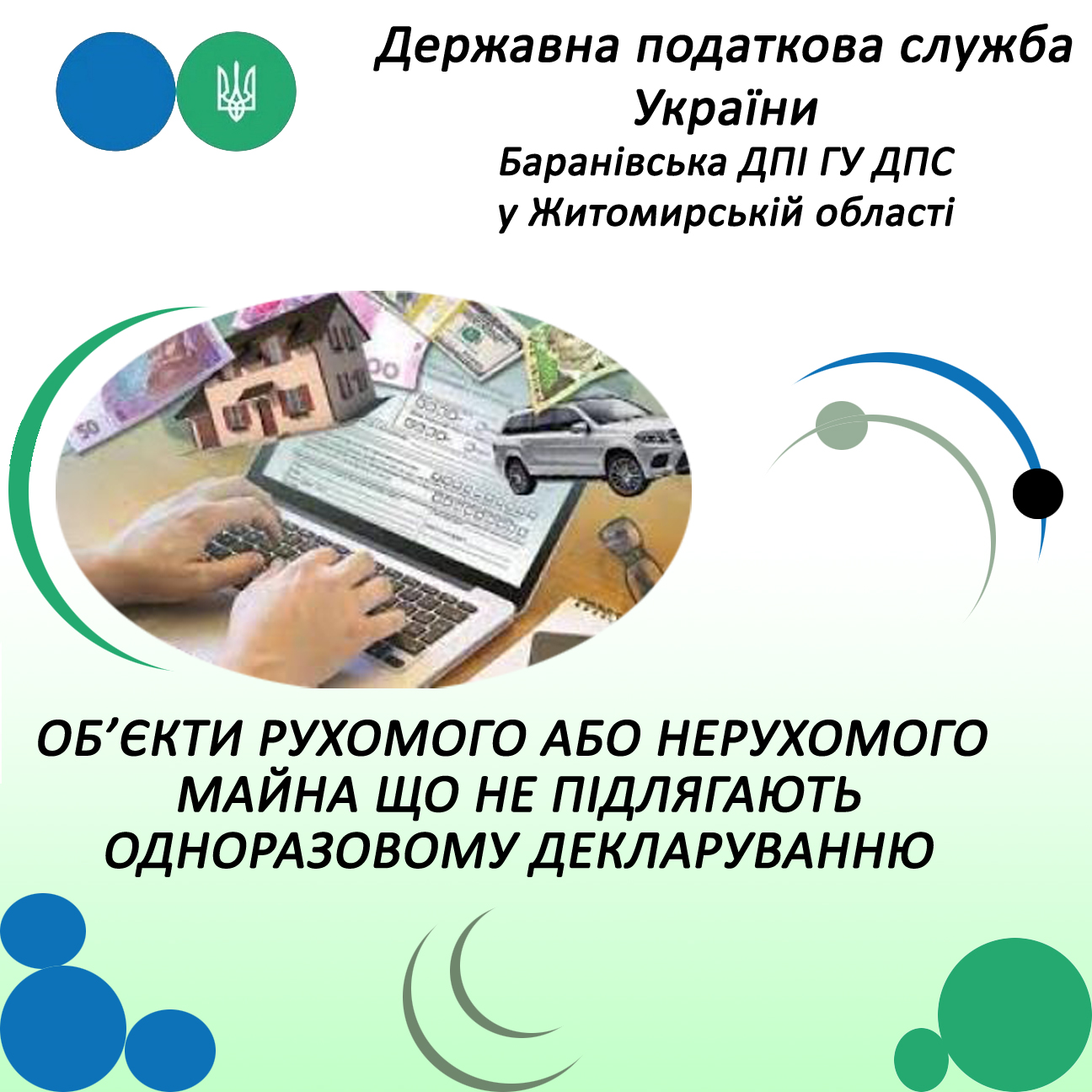 Баранівська ДПІ ГУ ДПС у Житомирській області інформує, що відповідно до п. 1 підрозд. 9 прим. 4 розд. XX «Перехідні положення» Податкового кодексу України одноразове (спеціальне) добровільне декларування – це особливий порядок добровільного декларування фізичною особою, визначеною п. 3 підрозд. 9 прим. 4 розд. ХХ ПКУ, належних їй активів, розміщених на території України та/або за її межами, якщо такі активи фізичної особи були одержані (набуті) такою фізичною особою за рахунок доходів, що підлягали в момент їх нарахування (отримання) оподаткуванню в Україні та з яких не були сплачені або сплачені не в повному обсязі податки і збори відповідно до вимог законодавства з питань оподаткування та/або міжнародних договорів, згода на обов’язковість яких надана Верховною Радою України, та/або які не були задекларовані в порушення податкового та валютного законодавства, контроль за дотриманням якого покладено на контролюючі органи, протягом будь-якого з податкових періодів, що мали місце до 01 січня 2021 року.