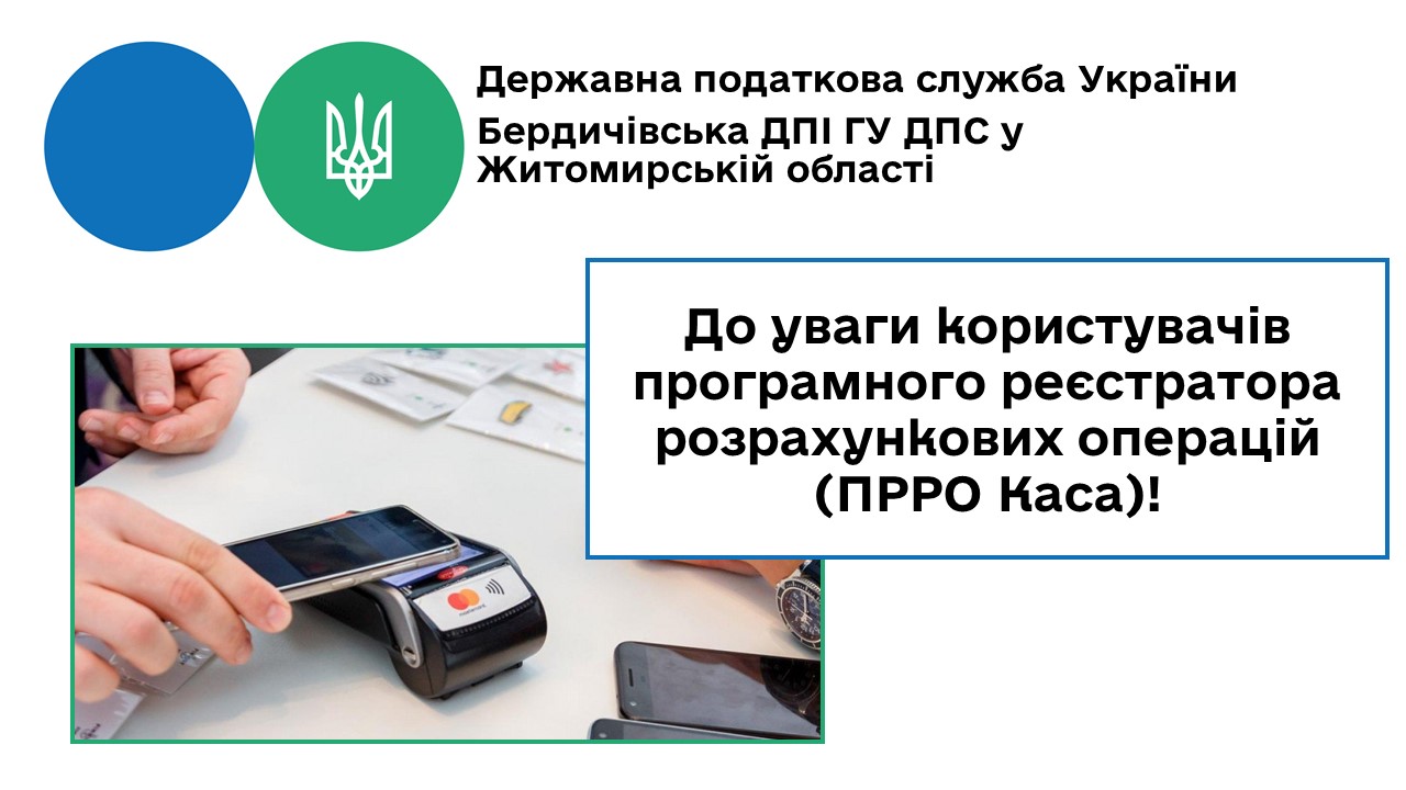 Бердичівська ДПІ: До уваги користувачів програмного реєстратора розрахункових операцій (ПРРО Каса)!