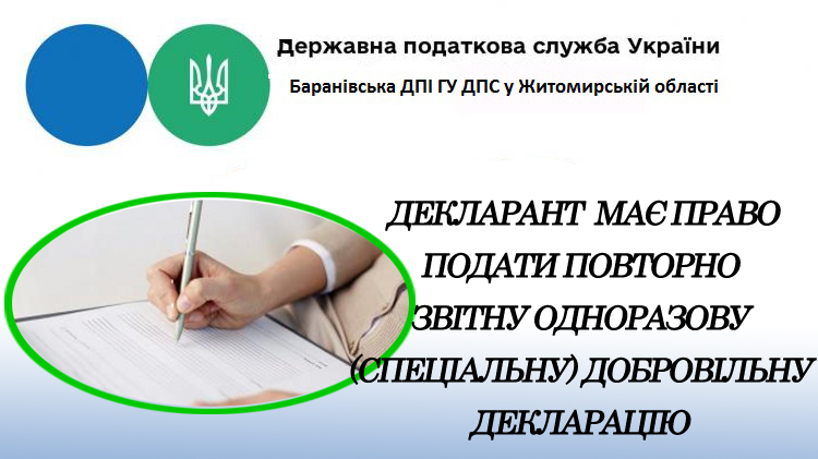 Баранівська ДПІ повідомляє, що відповідно до абзацу шостого п. 12 підрозд. 9 прим. 4 розд. ХХ «Перехідні положення» Податкового кодексу України (далі – ПКУ) у разі несплати або сплати в неповному обсязі суми збору з одноразового (спеціального) добровільного декларування (далі – Збір), зазначеної в одноразовій (спеціальній) добровільній декларації (далі – Декларація), у встановлений підрозд. 9 прим. 4 розд. ХХ «Перехідні положення» ПКУ строк Декларація вважається неподаною та на декларанта не поширюються передбачені підрозд. 9 прим. 4 розд. ХХ «Перехідні положення» ПКУ державні гарантії та звільнення від відповідальності.