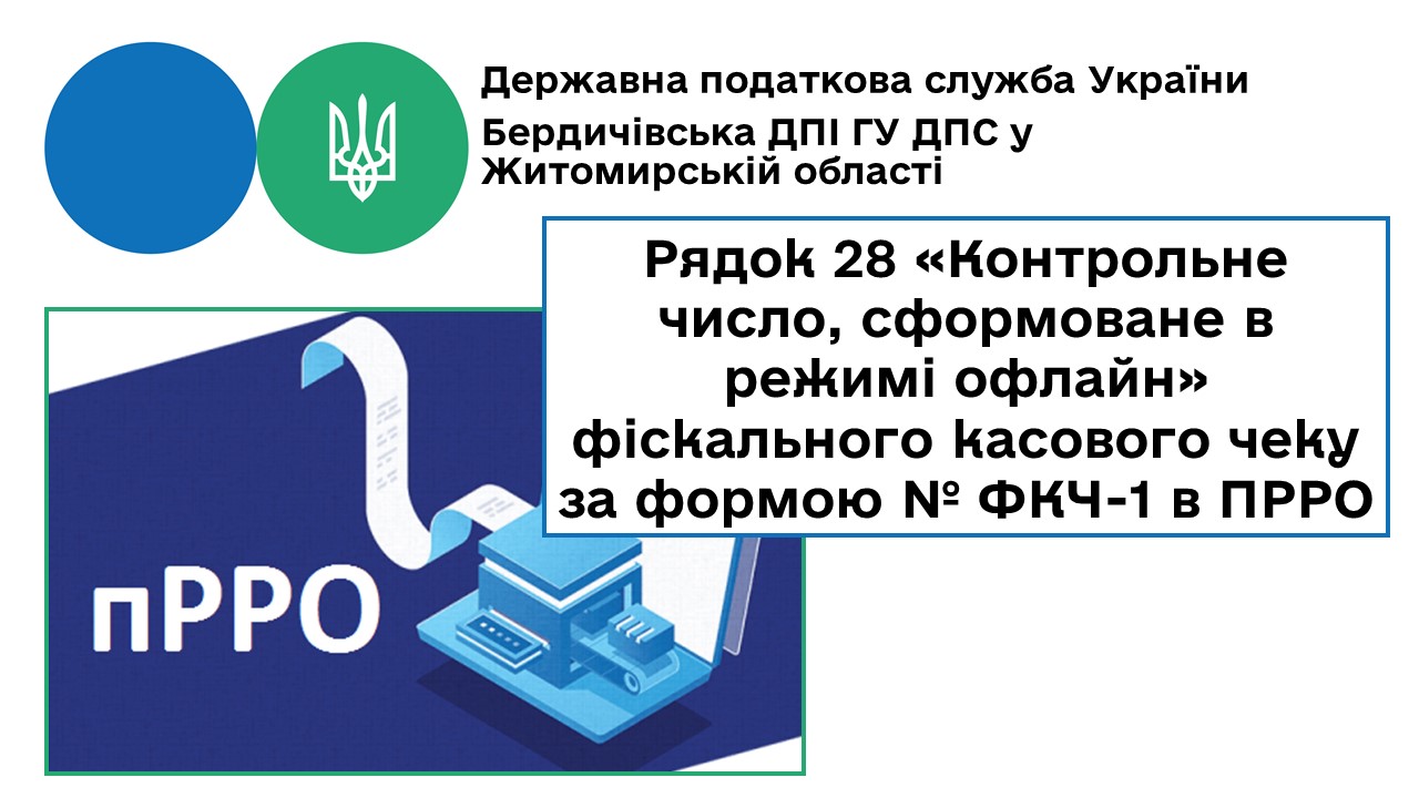 Бердичівська ДПІ: Значення, яке відображається в рядку 28 «Контрольне число, сформоване в режимі офлайн» фіскального касового чеку за формою № ФКЧ-1 в ПРРО