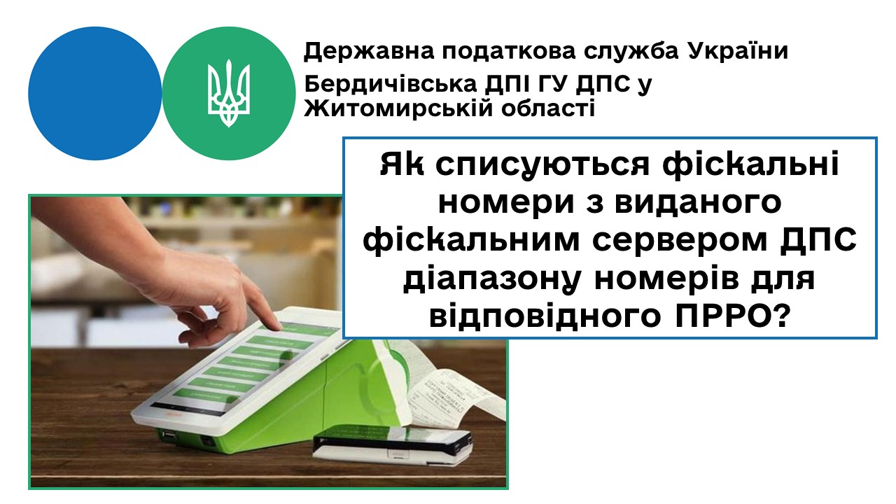 Бердичівська ДПІ: Списання фіскальних номерів із виданого фіскальним сервером ДПС діапазону номерів для відповідного ПРРО