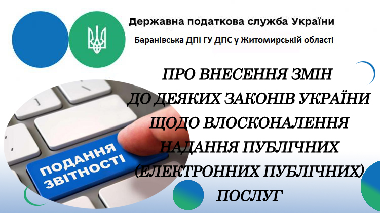 Баранівська ДПІ ГУ ДПС у Житомирській області звертає увагу, що 07.11.2021 набрав чинності Закон України «Про внесення змін до деяких законів України щодо вдосконалення надання публічних (електронних публічних) послуг» № 1767-ІХ від 22.09.2021 (далі – Закон).
