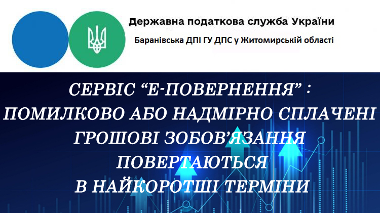 Баранівська ДПІ : Сервіс «Е-повернення»: помилково або надмірно сплачені грошові зобов’язання повертаються в найкоротші терміни