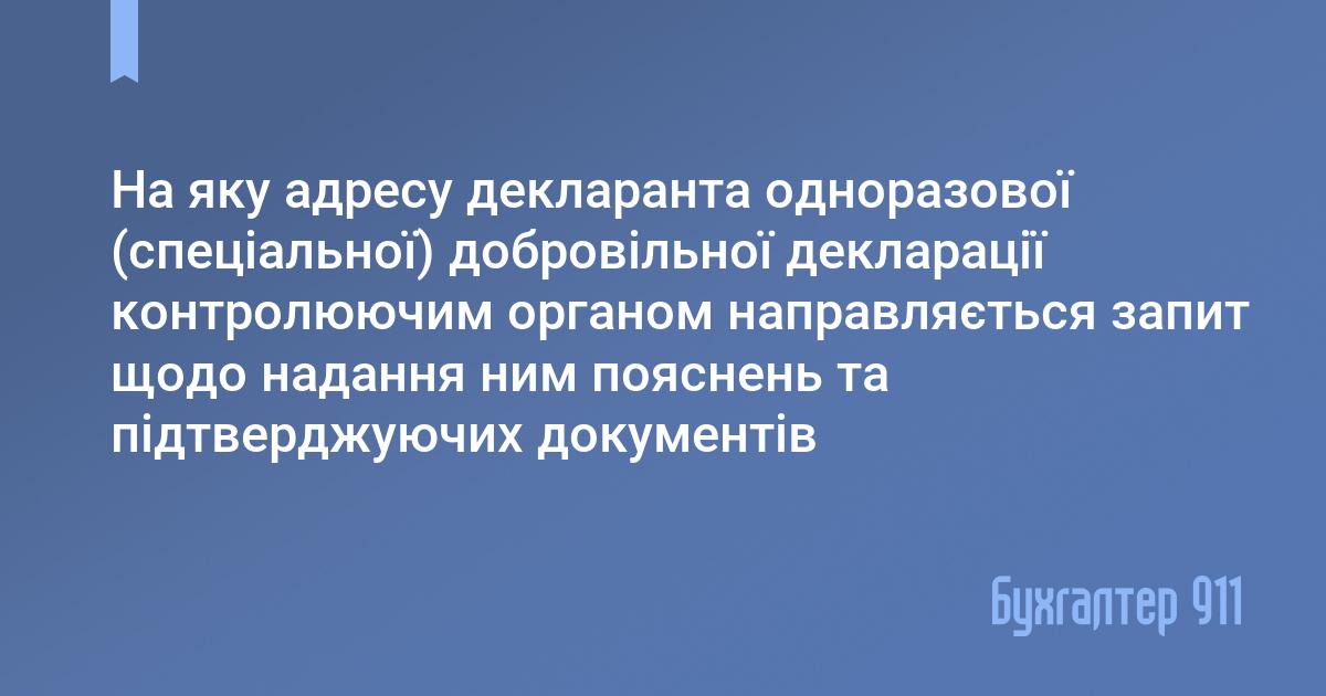 Таким чином, запит щодо надання декларантом пояснень або підтверджуючих документів направляється контролюючим органом за адресою, яка зазначена таким декларантом у поданій Декларації. При цьому, інформація про направлення зазначеного запиту буде відображатися також у Електронному кабінеті декларанта.
