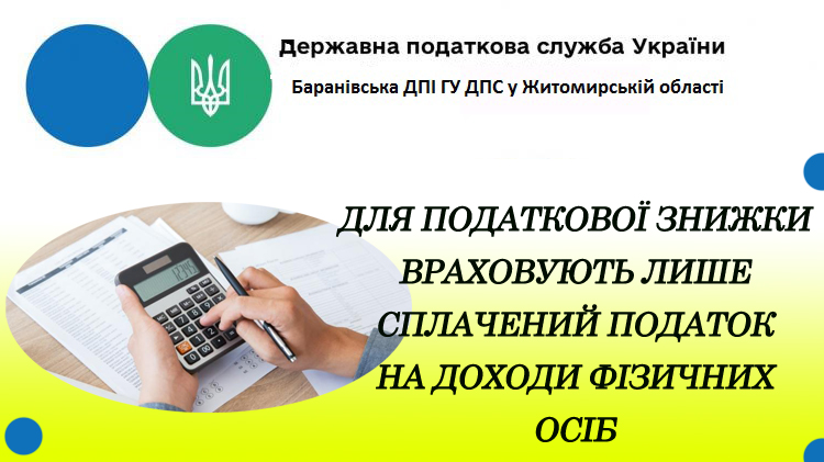 Баранівська ДПІ ГУ ДПС у Житомирській області інформує, якщо податковий агент утримав, але не сплатив податок на доходи фізичних осіб до бюджету, то фізична особа не матиме права на податкову знижку.