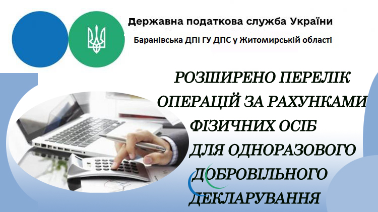 Баранівська ДПІ ГУ ДПС у Житомирській області повідомляє що,Національний банк України розширив перелік операцій за поточними рахунками фізичних осіб (резидентів та нерезидентів).