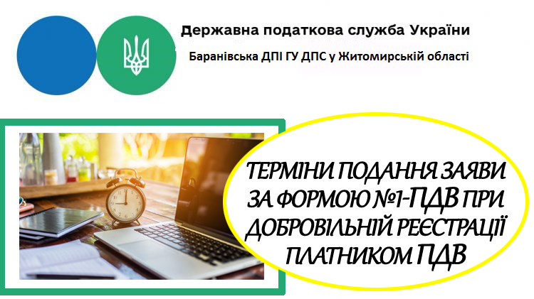 Баранівська ДПІ :Терміни подання заяви за формою № 1-ПДВ при добровільній реєстрації платником ПДВ
