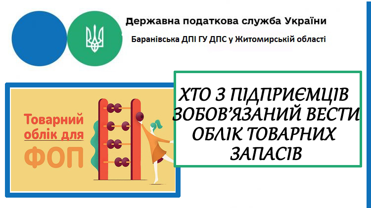 Баранівська ДПІ ГУ ДПС у Житомирській області інформує, що відповідно до пункту 12 статті 3 Закону України від 06 липня 1995 року № 265/95-ВР «Про застосування реєстраторів розрахункових операцій у сфері торгівлі, громадського харчування та послуг» суб’єкти господарювання, які здійснюють розрахункові операції в готівковій та/або в безготівковій формі (із застосуванням електронних платіжних засобів, платіжних чеків, жетонів тощо) при продажу товарів (наданні послуг) у сфері торгівлі, громадського харчування та послуг, а також операції з приймання готівки для подальшого її переказу зобов’язані вести в порядку, встановленому законодавством, облік товарних запасів, здійснювати продаж лише тих товарів (послуг), що відображені в такому обліку.