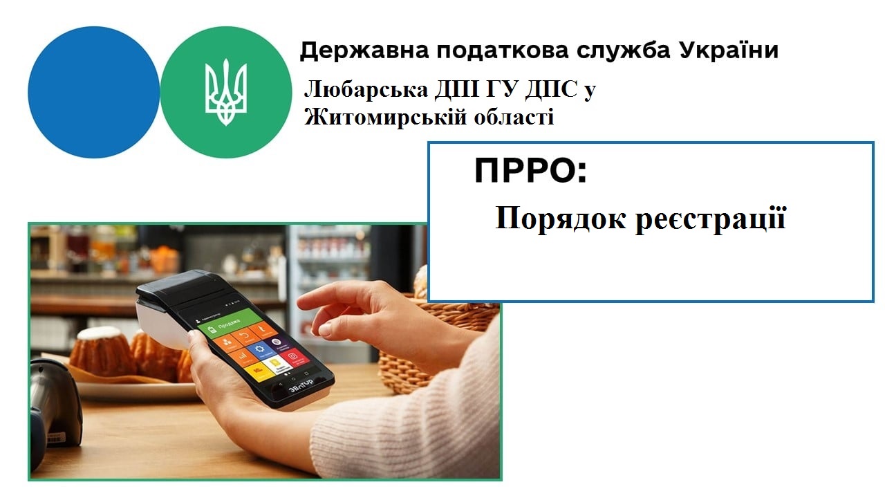 Любарська ДПІ нагадує, що для реєстрації ПРРО формується Заява про реєстрацію програмних реєстраторів розрахункових операцій за ф. № 1-ПРРО (J/F 1316604) (далі - реєстраційна заява за ф. № 1-ПРРО) в електронній формі, яка подається за основним місцем обліку суб’єкта господарювання як платника податків до фіскального сервера засобами Електронного кабінету (портального рішення для користувачів або програмного інтерфейсу (API)) або засобами телекомунікацій.