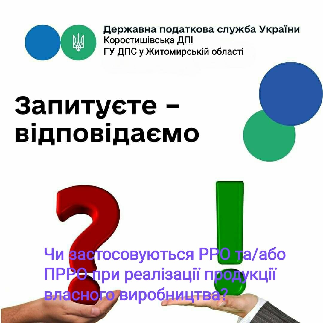 Коростишівська ДПІ: Чи застосовуються РРО та/або ПРРО при реалізації продукції власного виробництва?