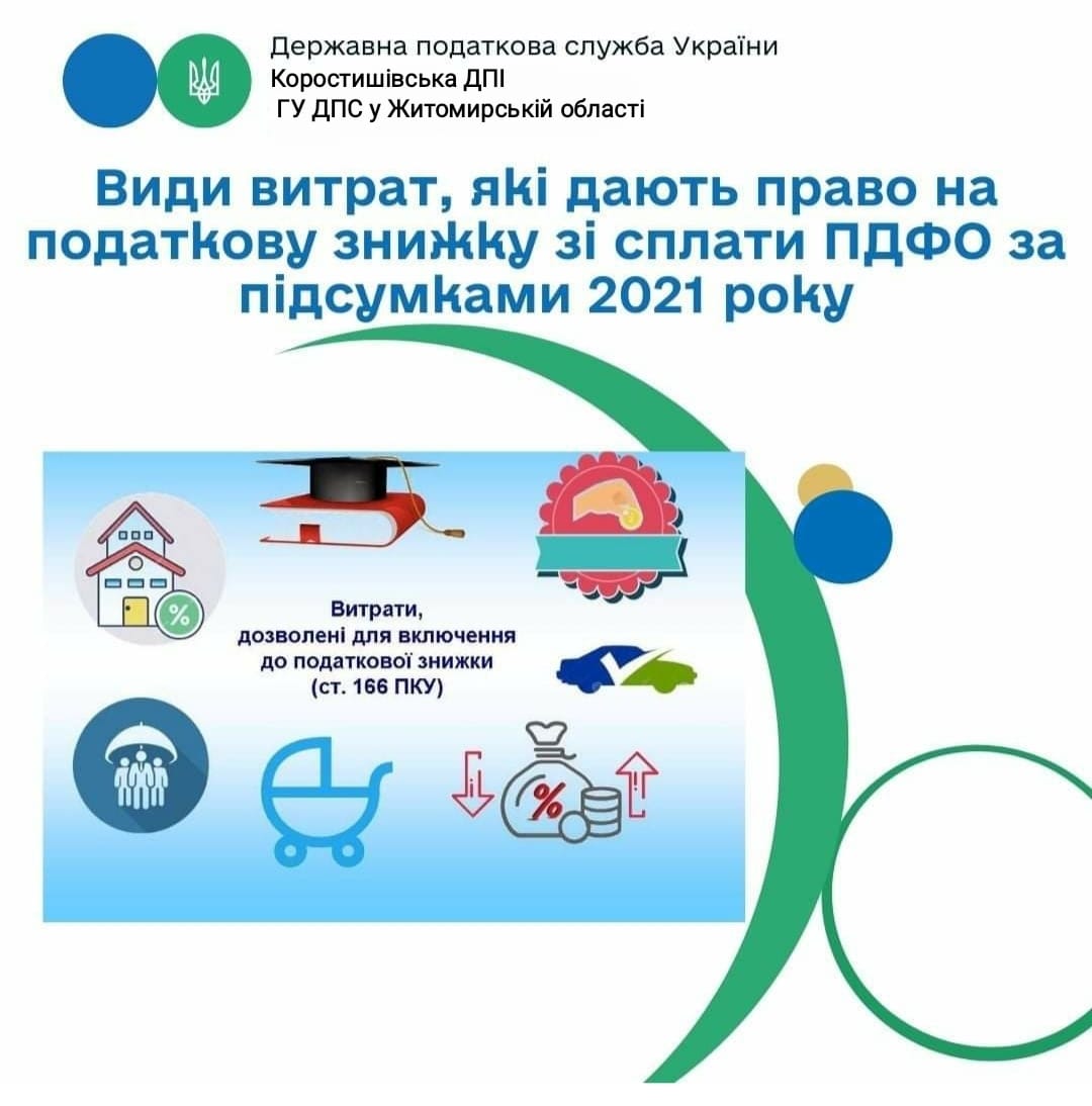 Коростишівська ДПІ: Види витрат, які дають право на податкову знижку зі сплати ПДФО за підсумками 2021 року