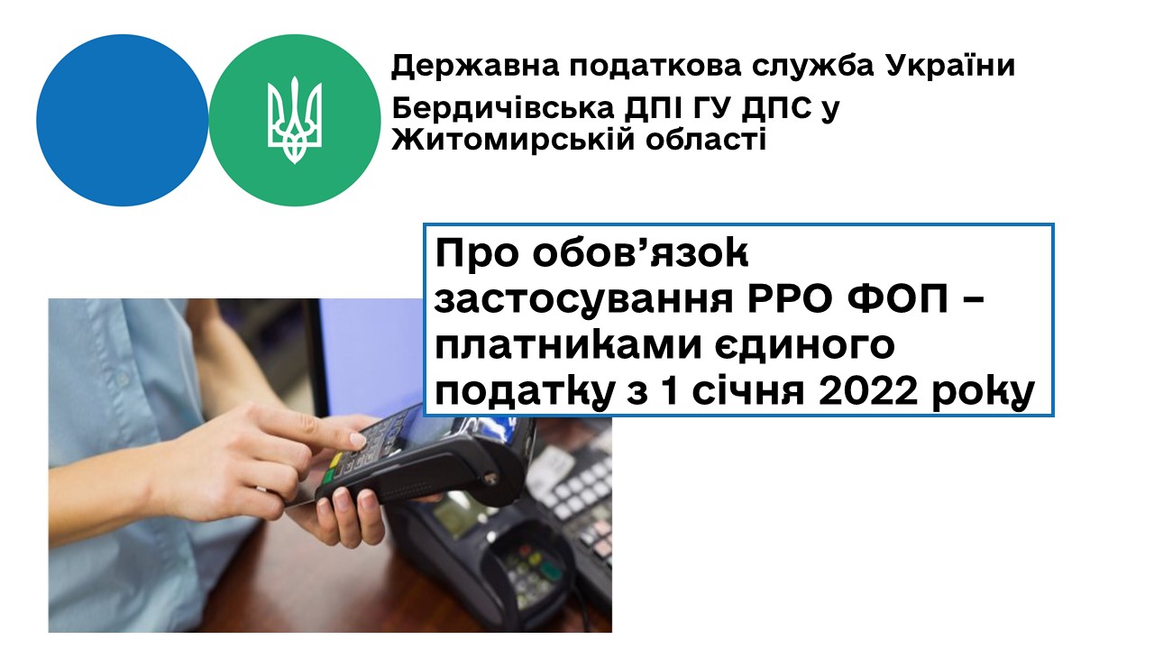 Бердичівська ДПІ: Про обов’язок застосування РРО ФОП – платниками єдиного податку з 1 січня 2022 року