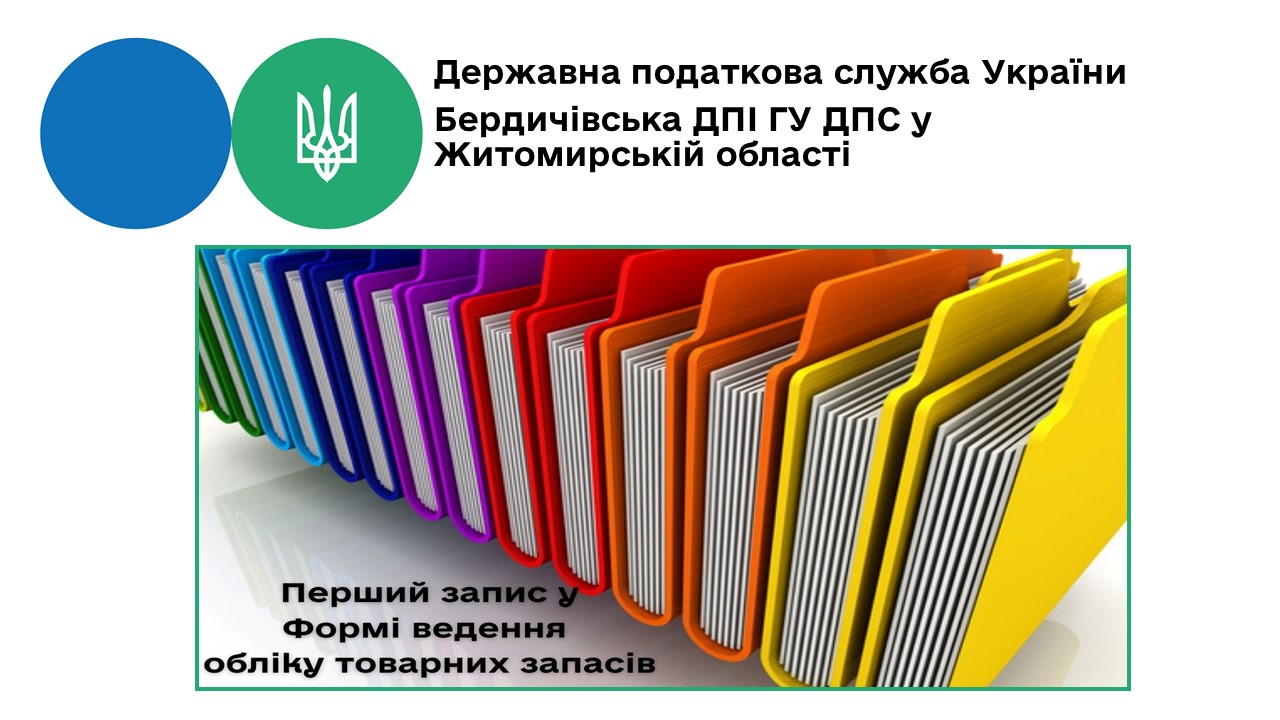 Бердичівська ДПІ інформує, що перший запис, який вноситься фізичною особою – підприємцем, у тому числі платником єдиного податку до Форми ведення обліку товарних запасів, має відображати інформацію про залишки товарів, наявних у такої ФОП на дату набуття ним обов’язку щодо ведення обліку товарних запасів.