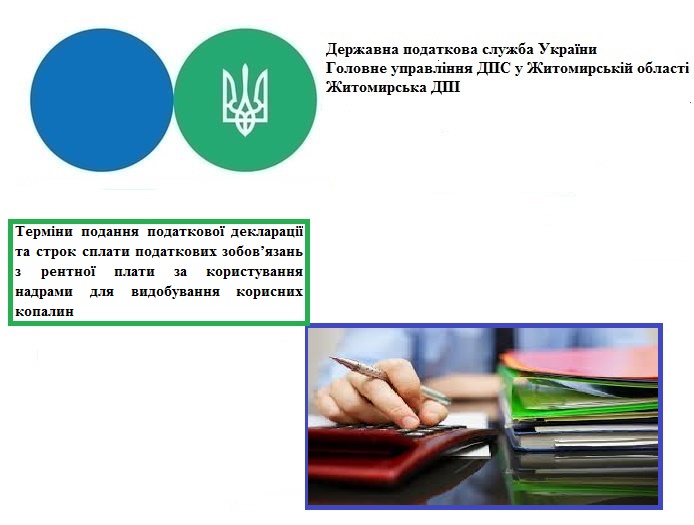 Житомирська ДПІ: Терміни подання податкової декларації та строк сплати податкових зобов’язань з рентної плати за користування надрами для видобування корисних копалин
