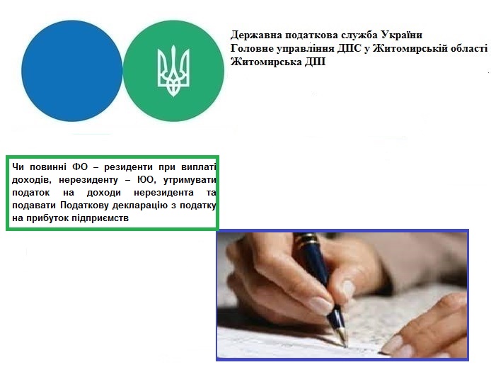 Житомирська ДПІ ГУ ДПС у Житомирській області інформує, чи повинні ФО – резиденти при виплаті доходів, визначених п.п. 141.4.1 п. 141.4 ст. 141 ПКУ, нерезиденту – ЮО утримувати податок на доходи нерезидента та подавати Податкову декларацію з податку на прибуток підприємств?