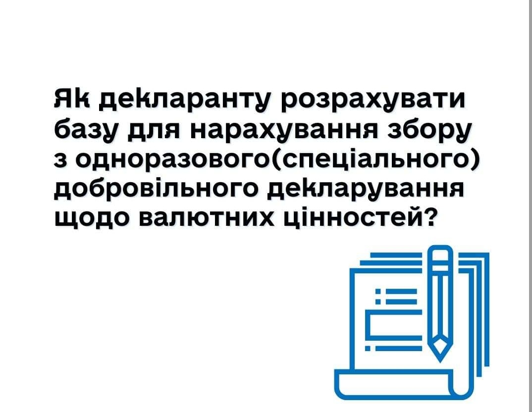 Згідно з п. 7.1 підрозд. 9 прим. 4 розд. XX «Перехідні положення» ПКУ для об’єктів декларування, визначених підпунктом «а» п. 4 підрозд. 9 прим. 4 розд. XX «Перехідні положення» ПКУ базою для нарахування збору з одноразового (спеціального) добровільного декларування є грошова вартість відповідного об’єкта декларування або номінальна вартість грошової вимоги, у тому числі за позиками, наданими третім особам.