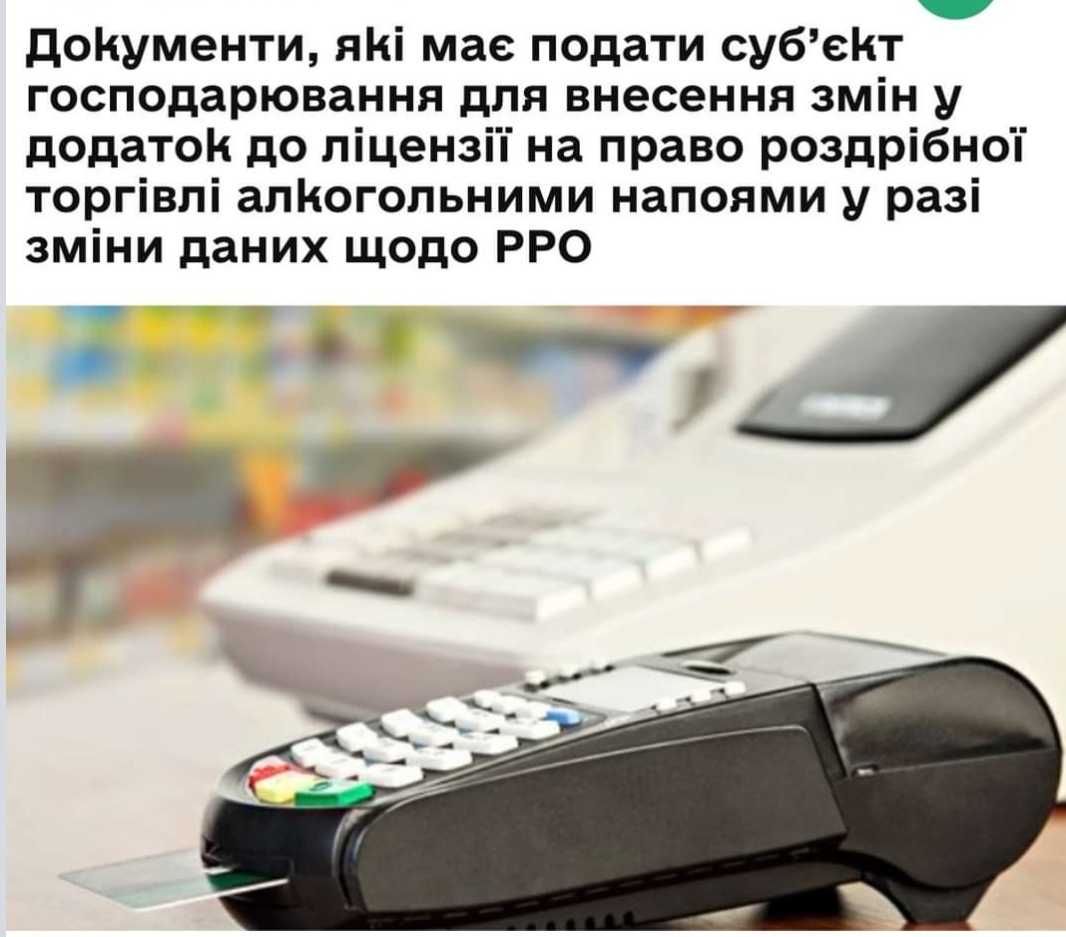 Чуднівська ДПІ: Документи, які має подати суб’єкт господарювання для внесення змін у додаток до ліцензії на право роздрібної торгівлі алкогольними напоями у разі зміни даних щодо РРО