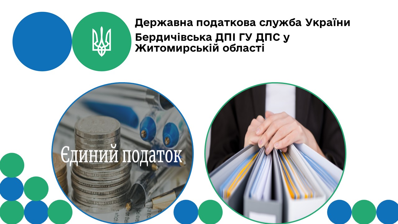 Бердичівська ДПІ інформує, що відповідно до п. 297.1 ст. 297 Податкового кодексу України від 02 грудня 2010 року № 2755-VI із змінами та доповненнями (далі – ПКУ) фізичні особи – підприємці – платники єдиного податку звільняються від обов’язку нарахування, сплати та подання податкової звітності з таких податків і зборів: