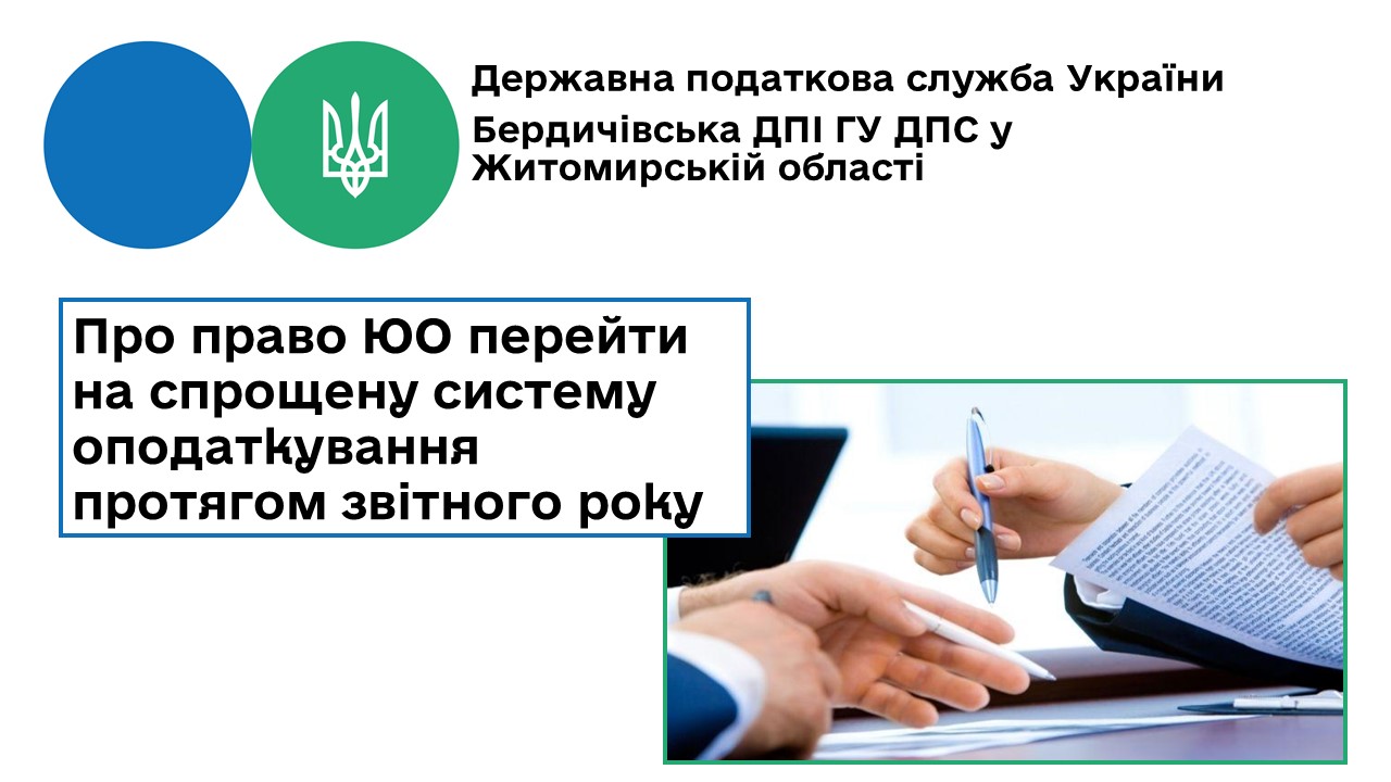 Бердичівська ДПІ: Про право ЮО перейти на спрощену систему оподаткування протягом звітного року