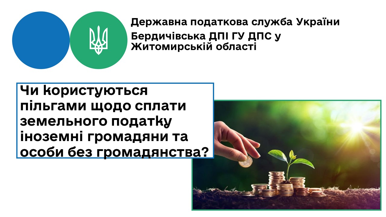 Бердичівська ДПІ: Про право іноземних громадян та осіб без громадянства на пільги щодо сплати земельного податку