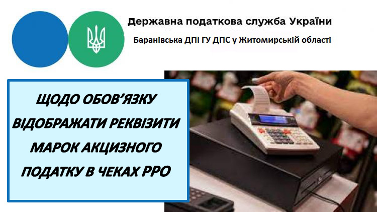Наголошуємо на необхідності обов’язкового дотримання суб’єктами господарювання вимог Закону України «Про застосування реєстраторів розрахункових операцій у сфері торгівлі, громадського харчування та послуг», зокрема, відображати у чеках РРО/ПРРО реквізити марок акцизного податку (серію та її номер).