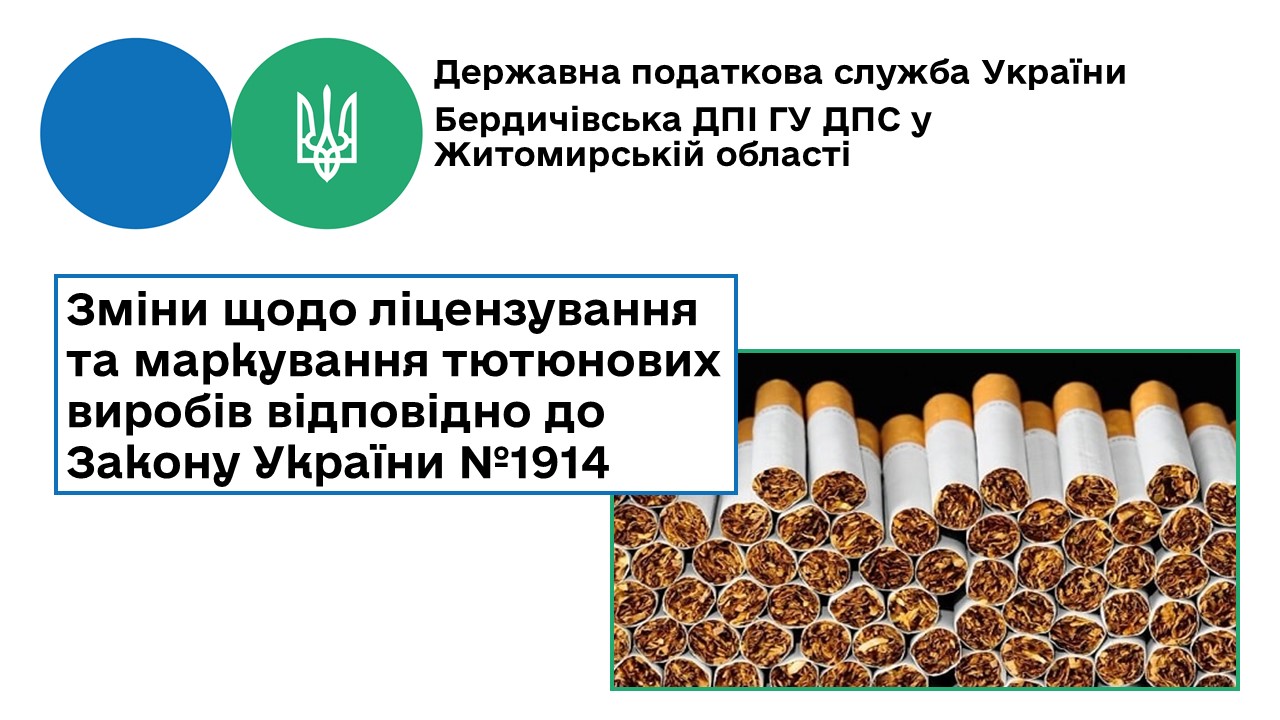 Бердичівська ДПІ: Зміни щодо ліцензування та маркування тютюнових виробів відповідно до Закону України №1914