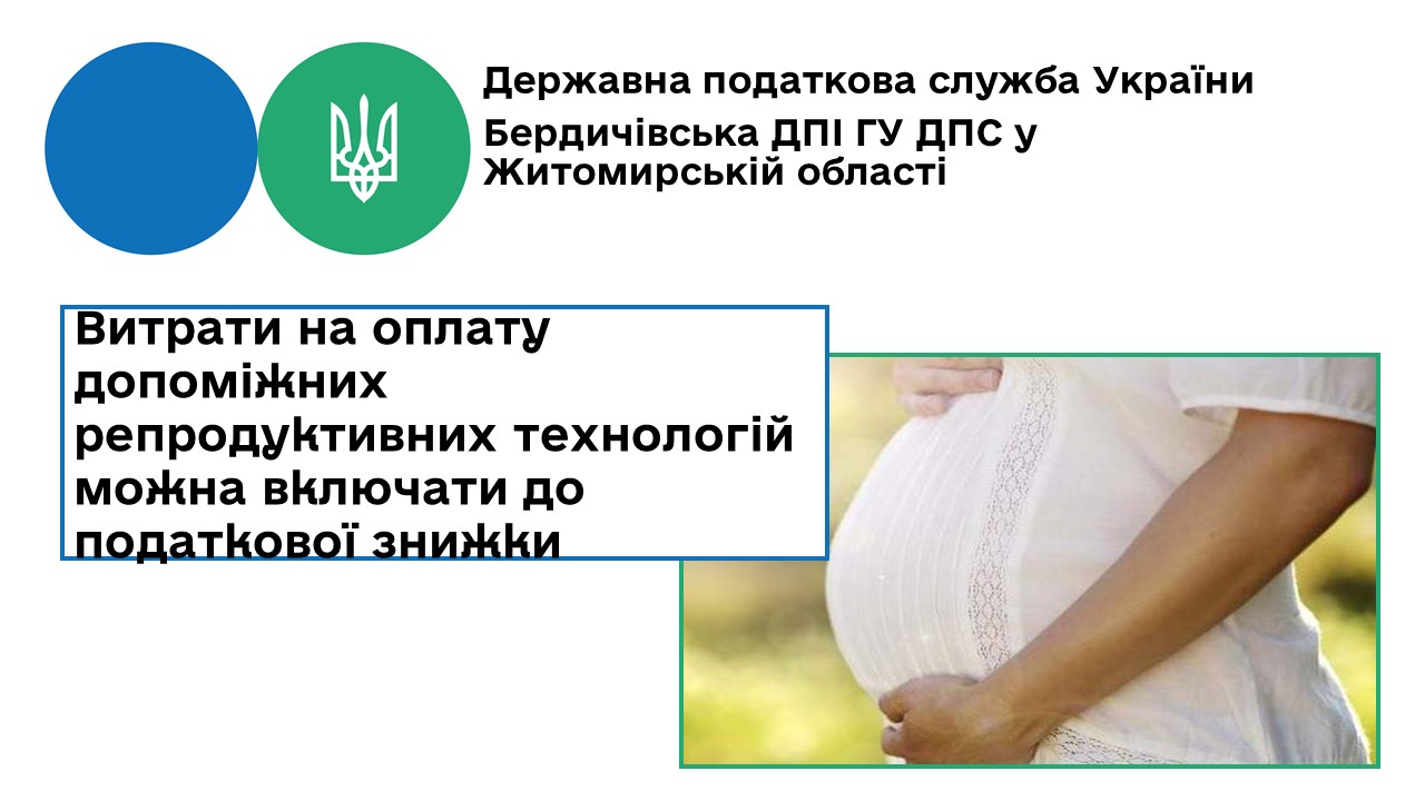 Бердичівська ДПІ інформує про можливість включення до податкової знижки витрат на оплату допоміжних репродуктивних технологій.