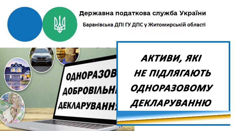 Баранівська ДПІ : Активи,які не підлягають одноразовому декларуванню