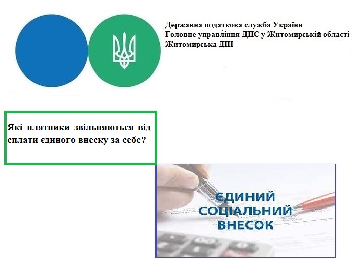 Житомирська ДПІ: Які платники звільняються від сплати єдиного внеску за себе?