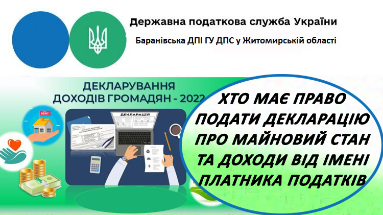 Баранівська ДПІ ГУ ДПС у Житомирскій області роз'яснює, що податкова декларація про майновий стан і доходи заповнюється платником податку на доходи фізичних осіб самостійно або іншою особою, нотаріально уповноваженою платником ПДФО здійснювати таке заповнення, у порядку, передбаченому главою 2 розділу II «Адміністрування податків» Податкового кодексу України (п. 179.5 ст. 179 ПКУ).
