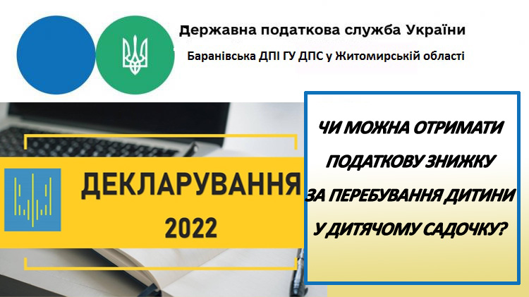 Баранівська ДПІ: Чи можна отримати податкову знижку за перебування дитини у дитячому садочку?