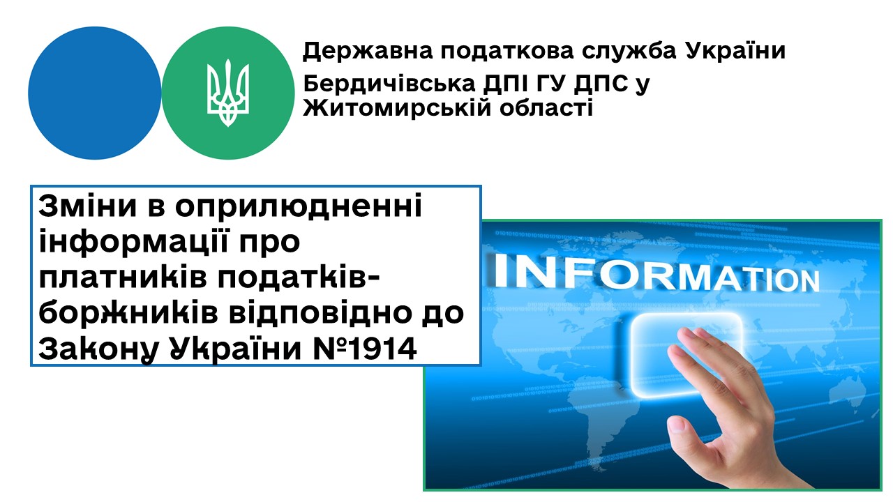 Бердичівська ДПІ: Зміни в оприлюдненні інформації про платників податків-боржників відповідно до Закону України №1914