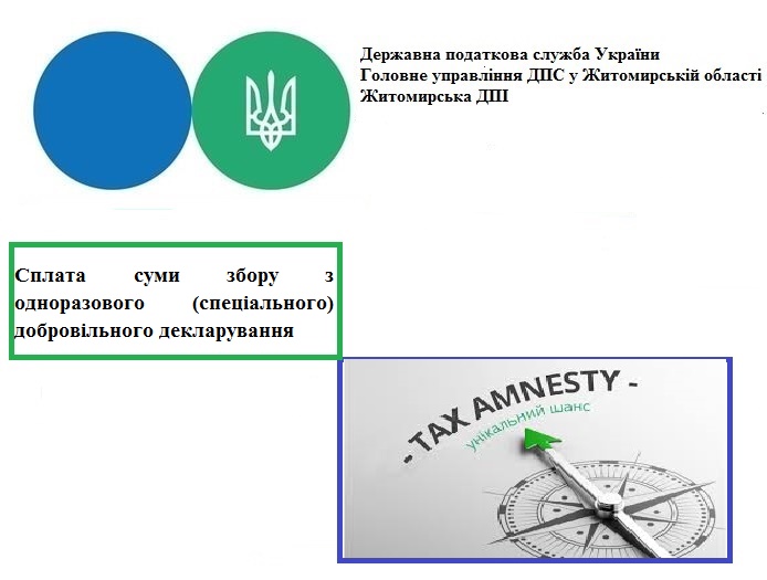 Житомирська ДПІ: Сплата суми збору з одноразового (спеціального) добровільного декларування