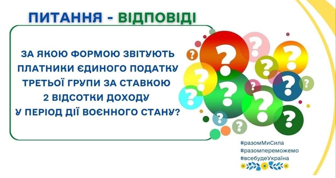 Чуднівська ДПІ ГУ ДПС у Житомирській області звертає увагу, що форма податкової декларації платника єдиного податку третьої групи за ставкою 2 відсотки доходу затверджена наказом Міністерства фінансів України від 26.04.2022 № 124 «Про затвердження форми податкової декларації платника єдиного податку третьої групи на період дії воєнного, надзвичайного стану в Україні», який зареєстровано в Міністерстві юстиції України 05.05.2022 за № 495/37831. Цей наказ набрав чинності з дня його офіційного опублікування (06.05.2022).
