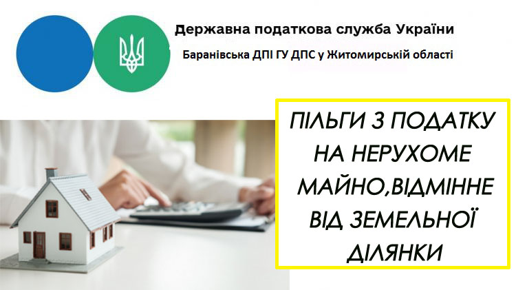 Баранівська ДПІ ГУ ДПС у Житомирській області доводить до відома, що пільги з податку на нерухоме майно, відмінне від земельної ділянки, встановлені п. 266.4 ст. 266 Податкового кодексу України, яким передбачено зменшення бази оподаткування об’єкта/об’єктів житлової нерухомості, в тому числі їх часток, що перебувають у власності фізичної особи – платника податку: