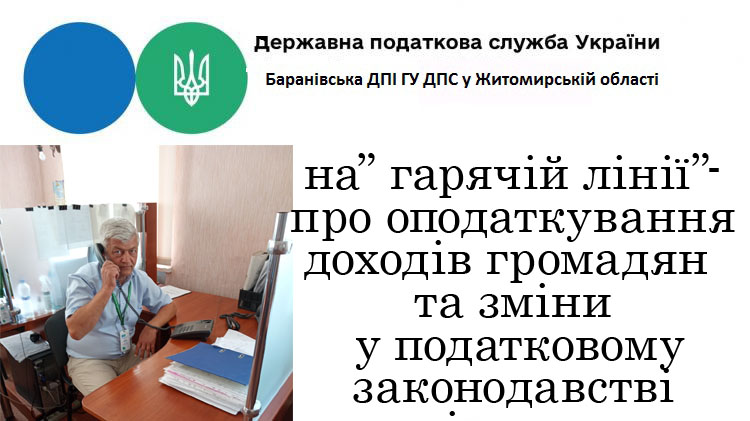 В Баранівській ДПІ проведено сеанс телефонного зв’язку «гаряча лінія» щодо оподаткування доходів громадян та змін у податковому законодавстві. На запитання платників відповідав начальник Баранівської ДПІ ГУ ДПС у Житомирській області Володимир Сушко.