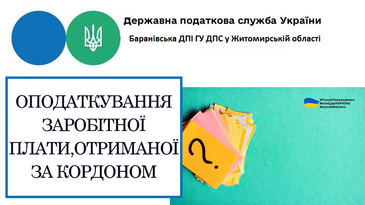 Баранівська ДПІ ДПС у Житомирській області повідомляє, що фізичні особи - податкові резиденти України, які працюють за кордоном та отримують іноземні доходи (доходи, отримані з джерел за межами України), зобов'язані декларувати отримані ними доходи, подаючи річну податкову декларацію про майновий стан і доходи - п. 170.11 ст. 170 ПКУ. Такі доходи оподатковуються податком на доходи фізичних осіб за ставкою 18% та військовим збором за ставкою 1,5 %.