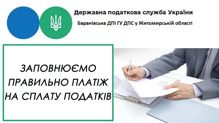Баранівська ДПІ ГУ ДПС у Житомирській області нагадує як правильно заповнити платіжний документ на сплату податків. Неправильне заповнення платіжного документу призводить до несвоєчасного зарахування платежів до бюджету.