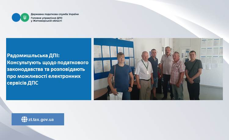 Начальник Радомишльської ДПІ Головного управління ДПС Житомирській області Сергій Кисельчук провів зустріч з відвідувачами Центру обслуговування платників, де обговорив сплату майнових податків та використання електронних сервісів ДПС.