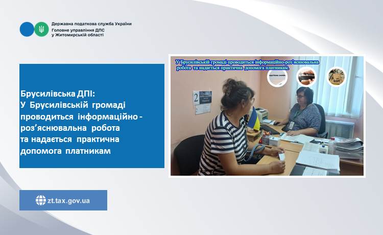Брусилівські податківці системно проводять роз’яснення платникам про обов’язкове застосування РРО/ПРРО при проведенні розрахункових операцій, забезпечення використання електронних платіжних засобів, оформлення трудових відносин з найманими працівниками, сплату майнових податків та переваги використання електронних сервісів ДПС України.