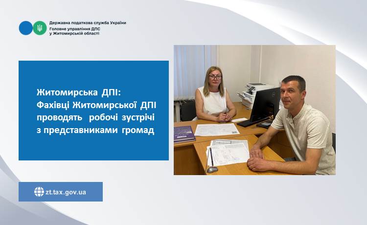 Нещодавно заступник начальника відділу обліку платників та об’єктів оподаткування Житомирської ДПІ ГУ ДПС у Житомирській області Тетяна Заволока провела робочу зустріч із старостою Новоселицького старостинського округу Попільнянської ТГ Олександром Чайківським , під час якої обговорили питання забезпечення надходжень до місцевих бюджетів громади та новації, що стосуються діяльності податкової служби.