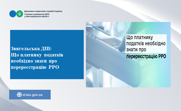 Шановні платники! Звягельська ДПІ ГУ ДПС у Житомирській області інформує, що главою 3 розділу ІІ Порядку реєстрації та застосування РРО, що застосовуються для реєстрації розрахункових операцій за товари (послуги), який затверджено наказом Міністерства фінансів України від 14.06.2016 №547 «Про затвердження порядків щодо реєстрації РРО та книг обліку розрахункових операцій» визначено випадки, за яких виникають підстави для перереєстрації РРО.